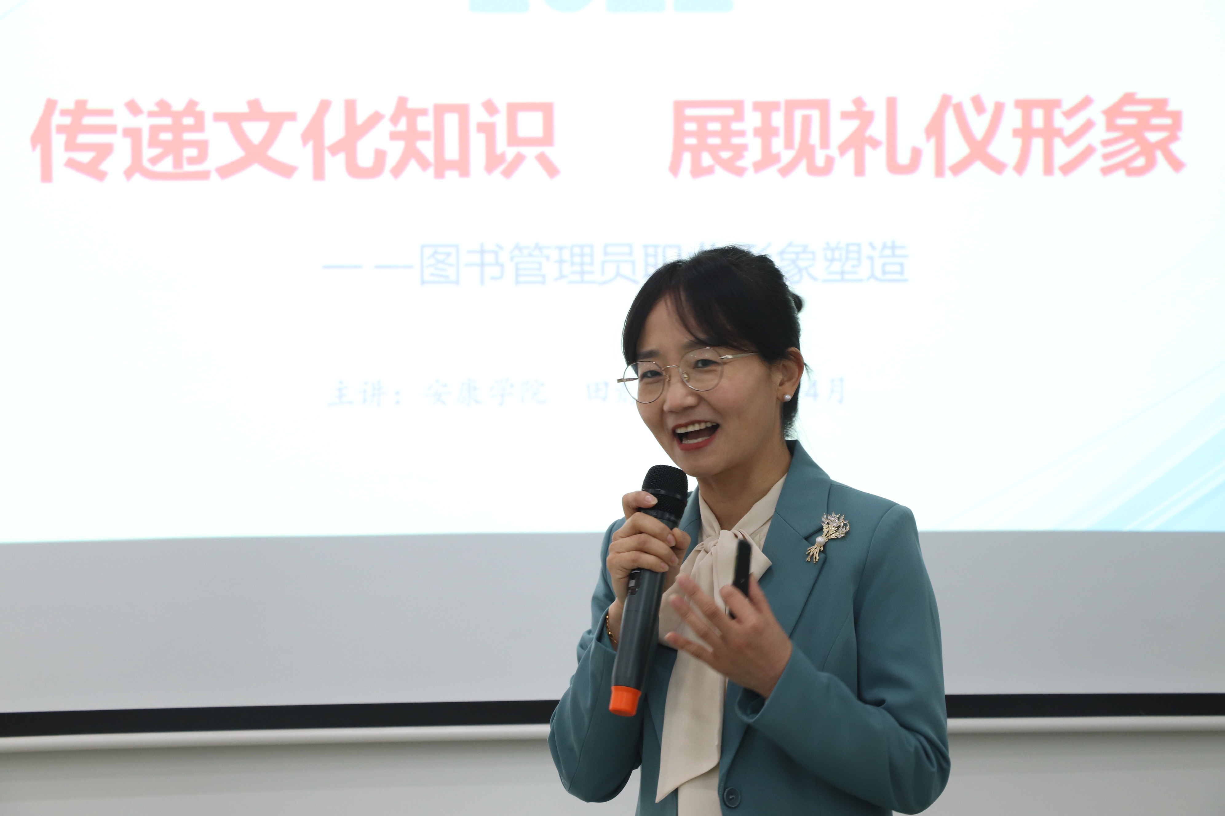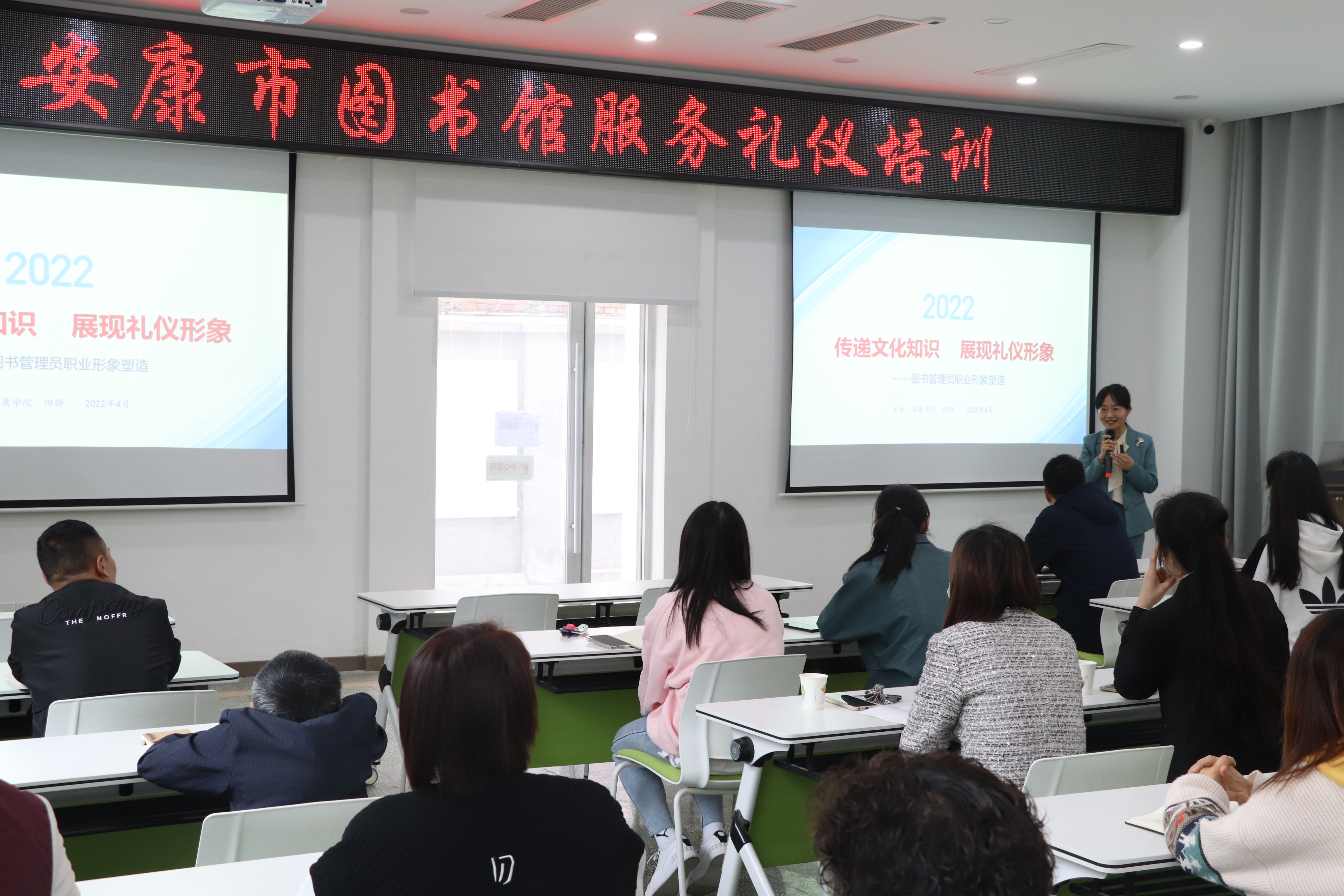此次讲座由为安康学院马克思主义学院党总支书记、国家高级礼仪培训师田静老师主讲。市图书馆全体职工共40余人参加了此次培训。