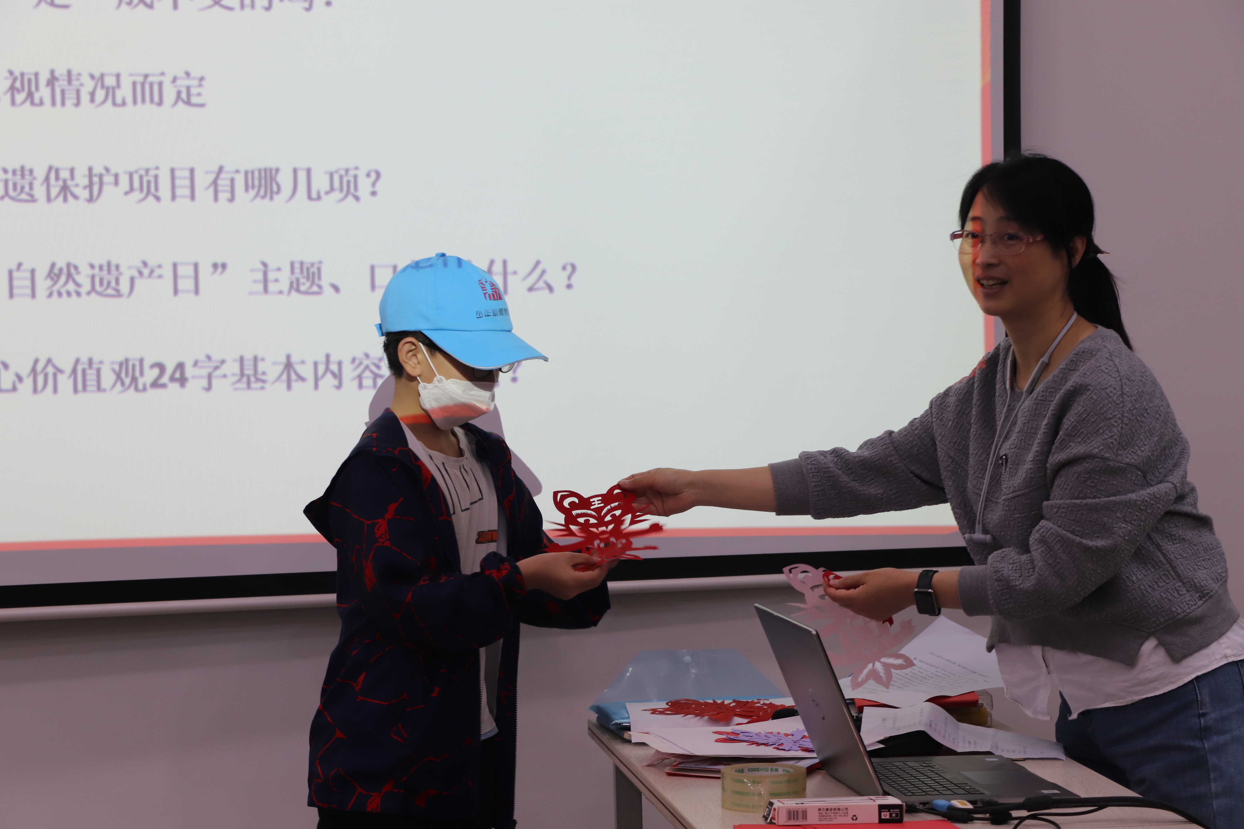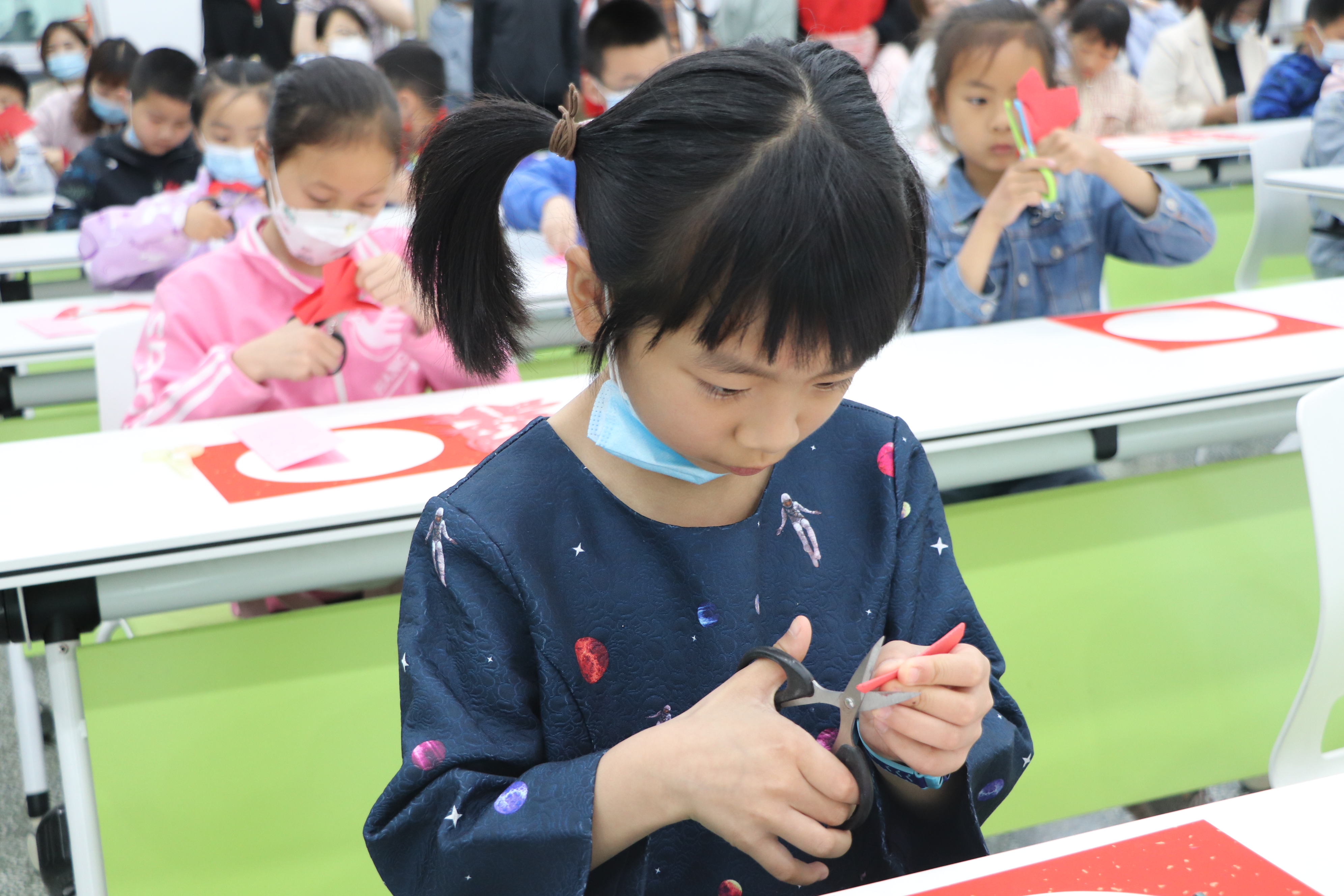活动现场,来自汉滨区非物质文化遗产保护中心的年静老师,汉滨剪纸区级代表性传承人冯增慧老师,分别就什么是剪纸、剪纸的基本符号及元素、剪纸创作的刀法运用等方面为现场学员作了讲解,并进行剪纸现场教学。学员们在老师的指导下,纷纷拿起手中的工具专心创作,有的剪爱虎、有的剪小兔、有的剪中国结、有的剪水果、煎蔬菜……一幅幅灵动的作品跃然纸上,或情趣盎然,或童真洋溢。