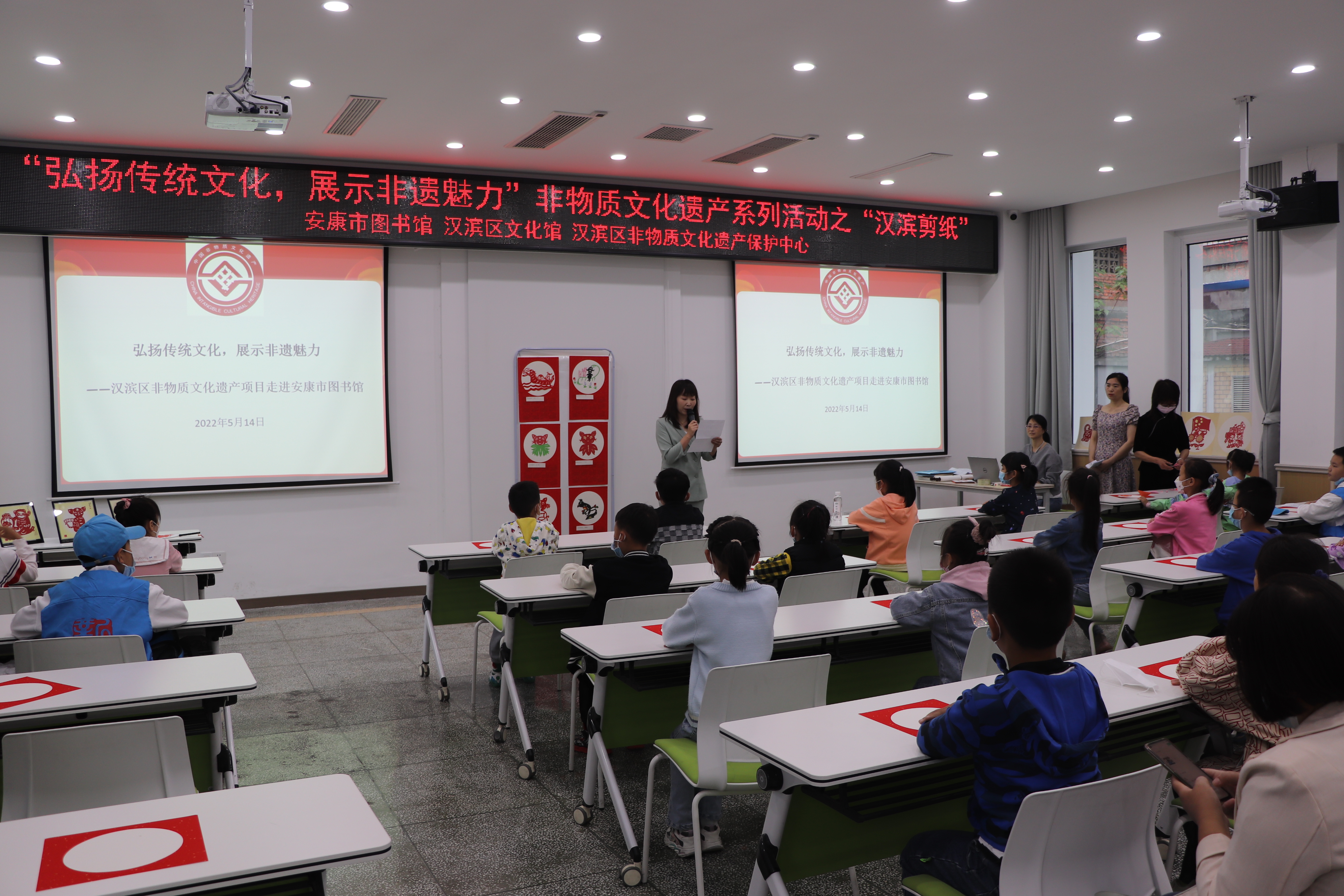 5月14日上午,由安康市图书馆、汉滨区文化馆、汉滨区非物质文化遗产保护中心联合举办的“弘扬传统文化 展示非遗魅力”非物质文化遗产系列活动暨“剪纸”活动,在安康市图书馆多功能报告厅顺利开展。